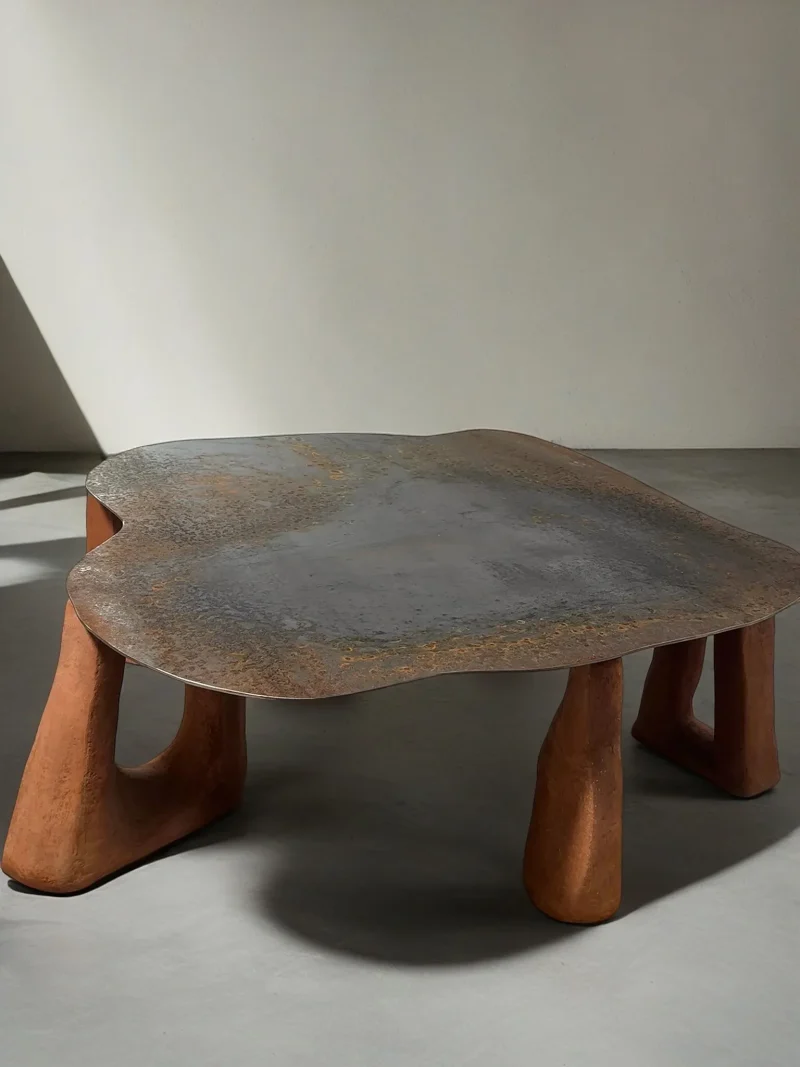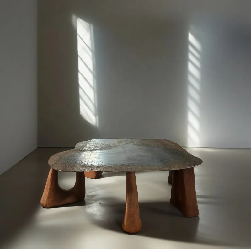 The Terra Table draws its essence from the terra roxa landscapes of Minas Gerais, where the rich, iron-infused clay paints the earth in deep, warm hues. This distinct color and texture echo the table’s design, inspired by ancient native Brazilian sculptures. For Nayara, these forms aren’t just artistic; they carry personal memories—of seeing the vibrant red soil on drives through the countryside and the traditional water filters that brought the earth into everyday life.
