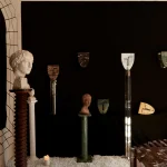 The collection is complemented by a series of pedestals showcasing these enigmatic faces. Available in three sizes – S, M, and L – they allude to the human form and manipulate perspective. From the wall-mounted variety, appearing to float effortlessly in space, to the imposing stature of the Modulor, standing at a height of 183cm, their shapes defy equilibrium and evoke simplified, distorted human silhouettes.