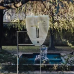 The reflectivity of polished stainless steel blends the pedestals completely into the landscape while providing a kinetic structure that captivates the observer’s gaze. These pieces appear to exist both inside and outside their spatial context – distorted reflections create a spatial experience and evoke a sense of intriguing and revealing visual perplexity, intriguing and revealing at once.