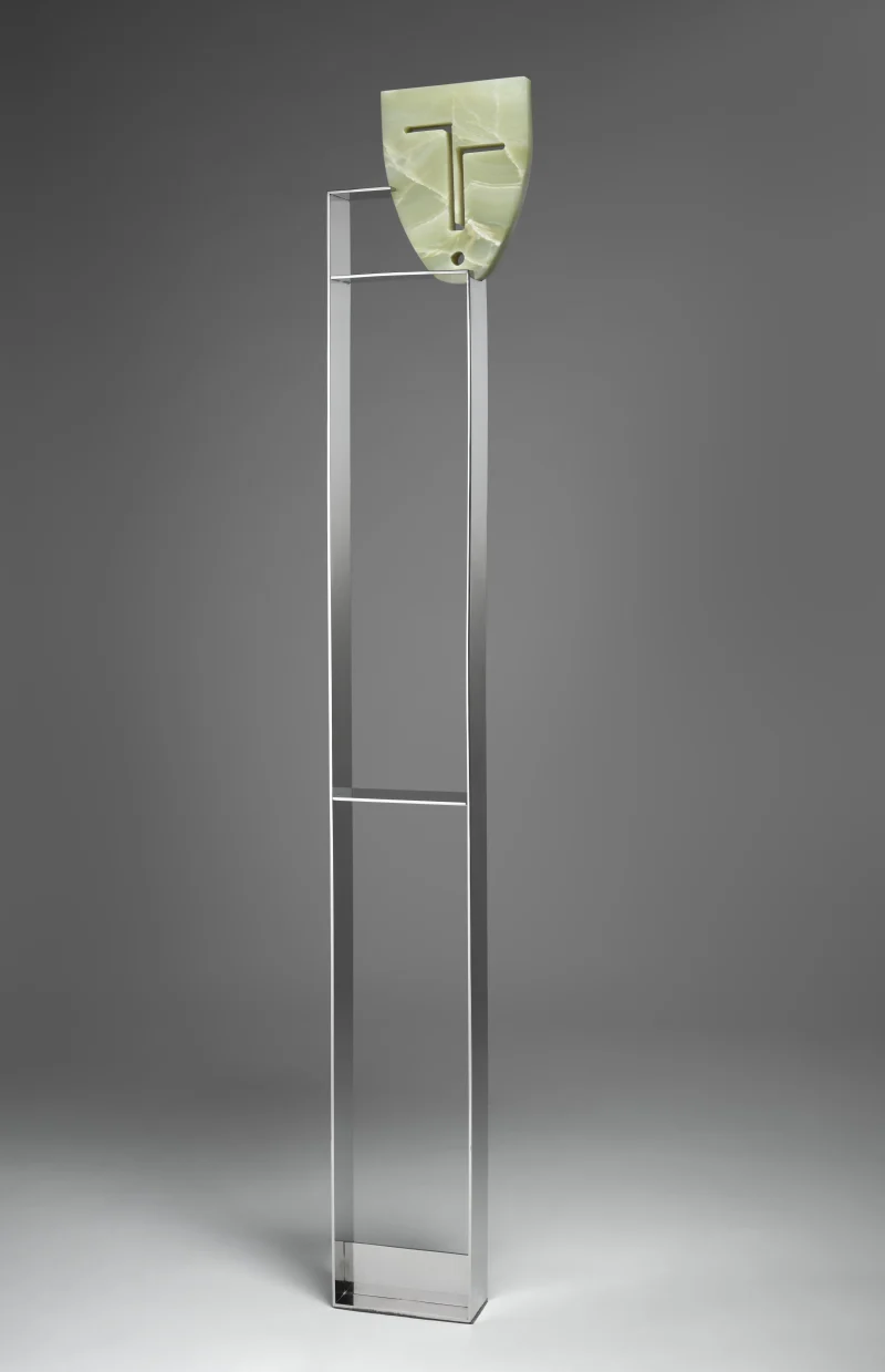 The collection is complemented by a series of pedestals showcasing these enigmatic faces. Available in three sizes – S, M, and L – they allude to the human form and manipulate perspective. From the wall-mounted variety, appearing to float effortlessly in space, to the imposing stature of the Modulor, standing at a height of 183cm, their shapes defy equilibrium and evoke simplified, distorted human silhouettes.