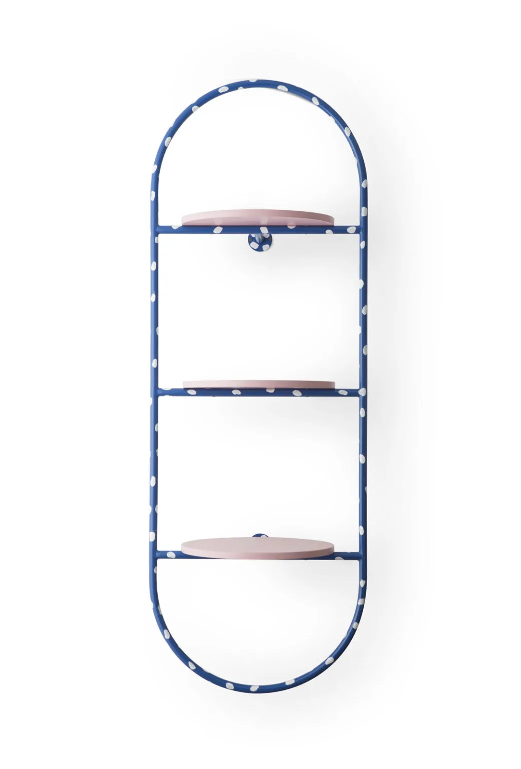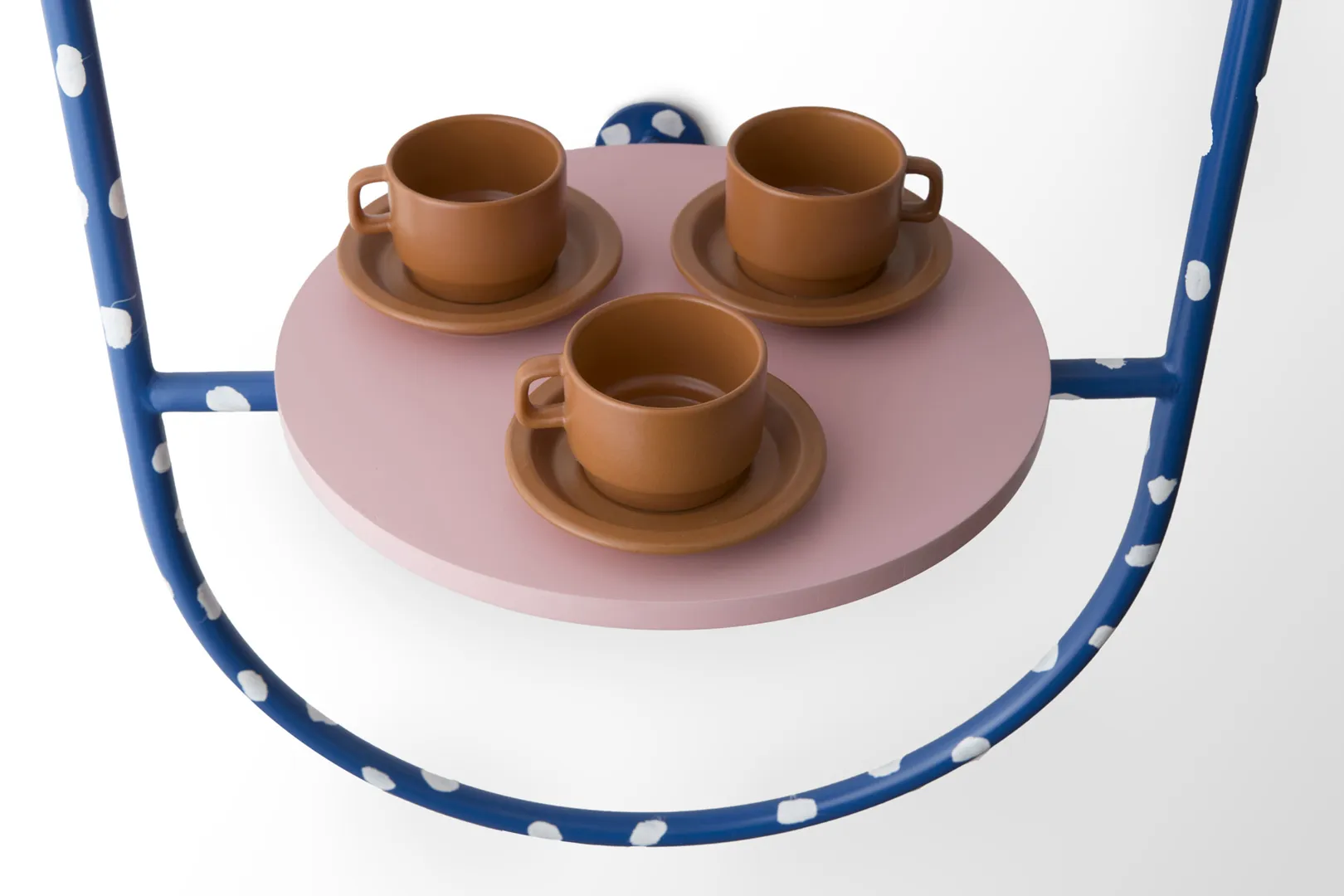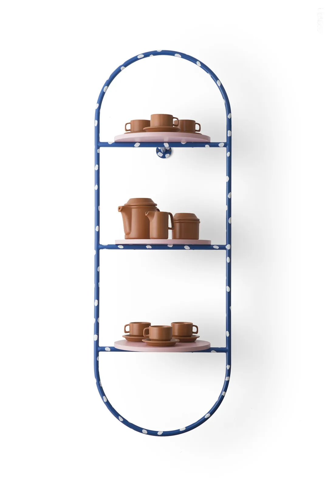 “Teteia” is a suspended shelf with curved shapes that fits well in any environment. Its white spots are made by hand, giving each piece a unique character.