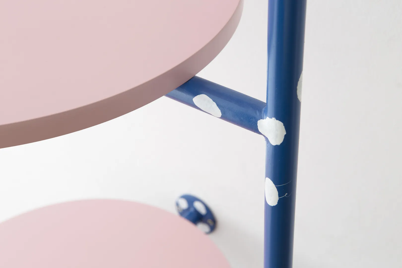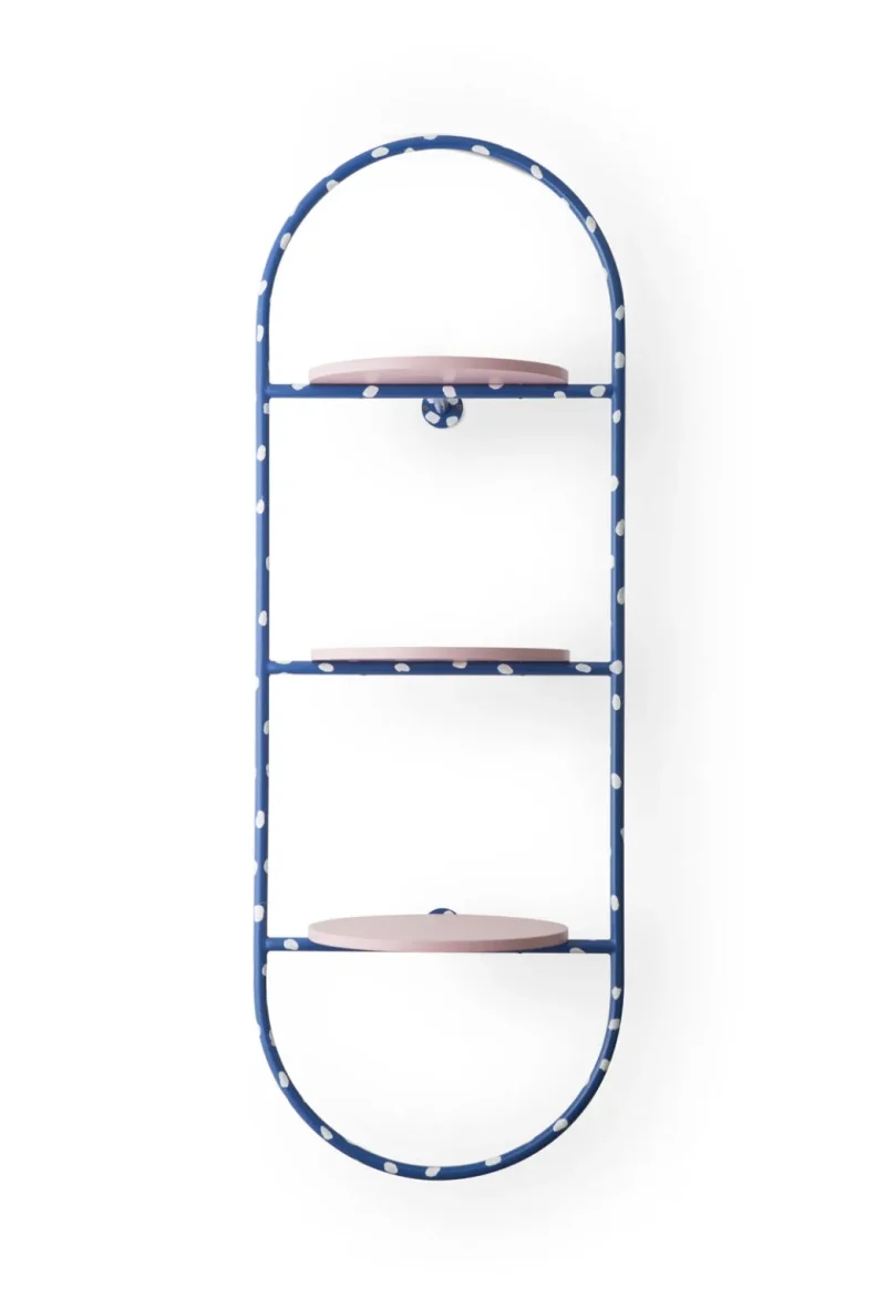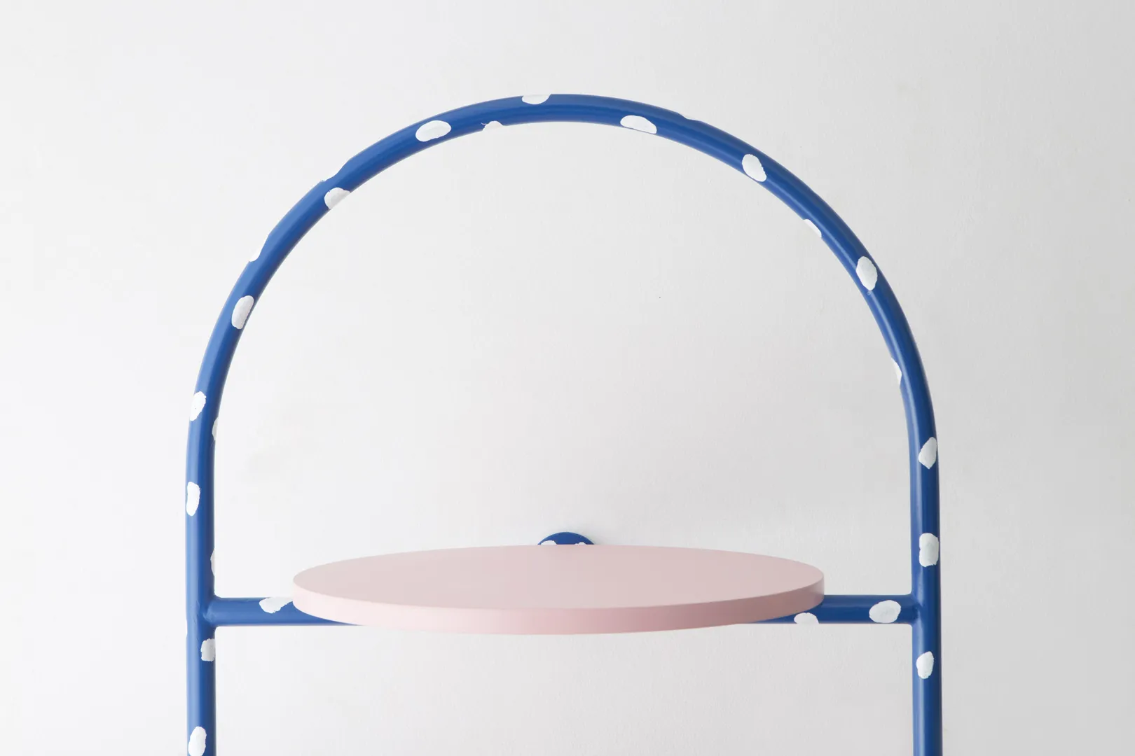“Teteia” is a suspended shelf with curved shapes that fits well in any environment. Its white spots are made by hand, giving each piece a unique character.