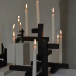 The colour combination of black and red creates a synthesis of elegance and festive expression. The three simple, repeating basic shapes merge into a fascinating geometric figure constructed on the same foundational form. TETRIS dazzles in the distinct variations: for three, five, or seven candles. They carry a rich heritage, inter-weaving tales of tradition, origins, and a longing for beauty.