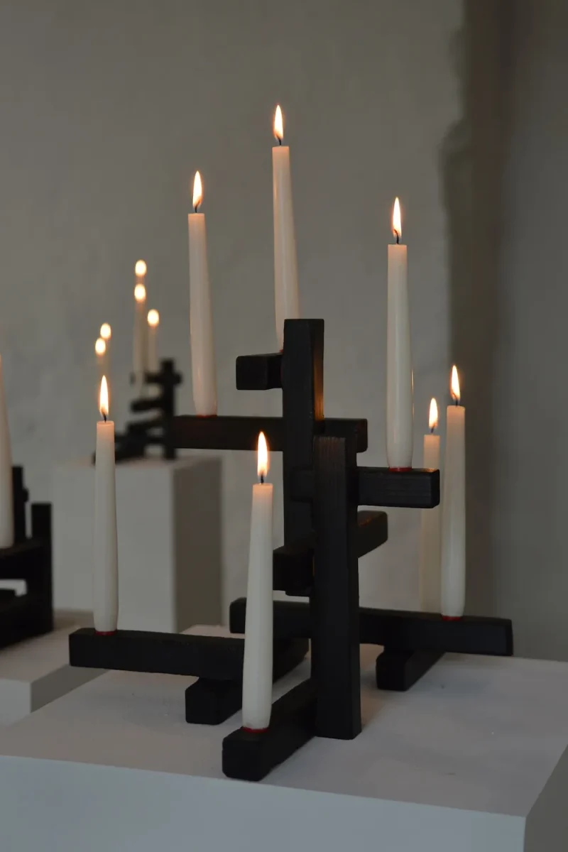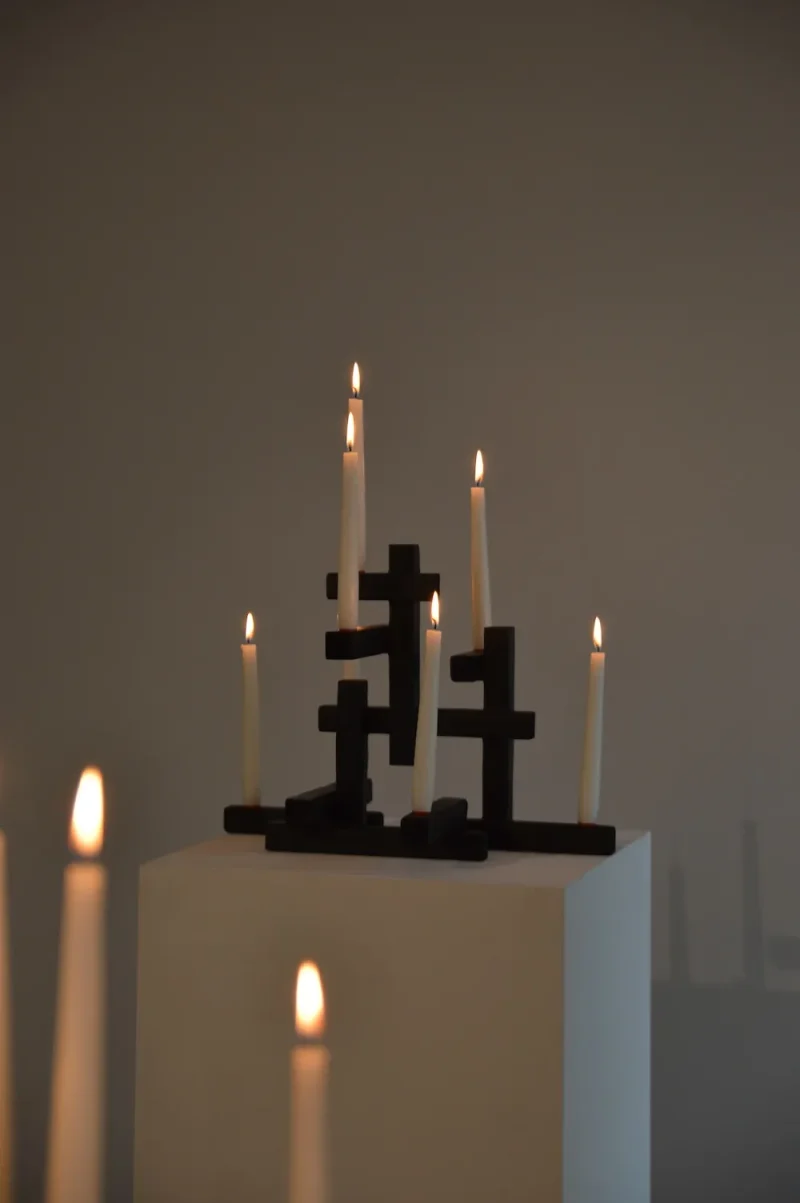 The colour combination of black and red creates a synthesis of elegance and festive expression. The three simple, repeating basic shapes merge into a fascinating geometric figure constructed on the same foundational form. TETRIS dazzles in the distinct variations: for three, five, or seven candles. They carry a rich heritage, inter-weaving tales of tradition, origins, and a longing for beauty.