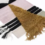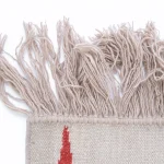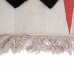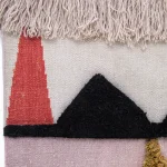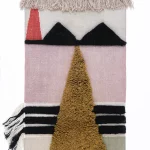 Textile Poster no. 12 embodies a constant exploration of design possibilities within traditional carpet-making techniques, introducing wool in a novel and unprecedented texture. The geometric shapes’ hard lines find harmony in the softening effect of wool and hanging fringe, resulting in a uniquely balanced piece. Versatile in nature, it seamlessly complements eclectic spaces, offering a distinctive touch to various environments.