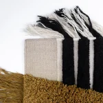 With her textile posters, Mareike Lienau shows a strong language of form and the use of knotted/woven wool in a newly developed combination of techniques.