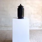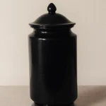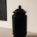 The Albarello is inspired by medicinal jars used to hold apothecaries’ ointments and dry drugs. Its shape made it easier to store on apothecary shelves. The ceramic is hand-thrown and the original decor has been blacked out. The shiny black glaze has been rubbed by hand by the artisans to give this matte finish.