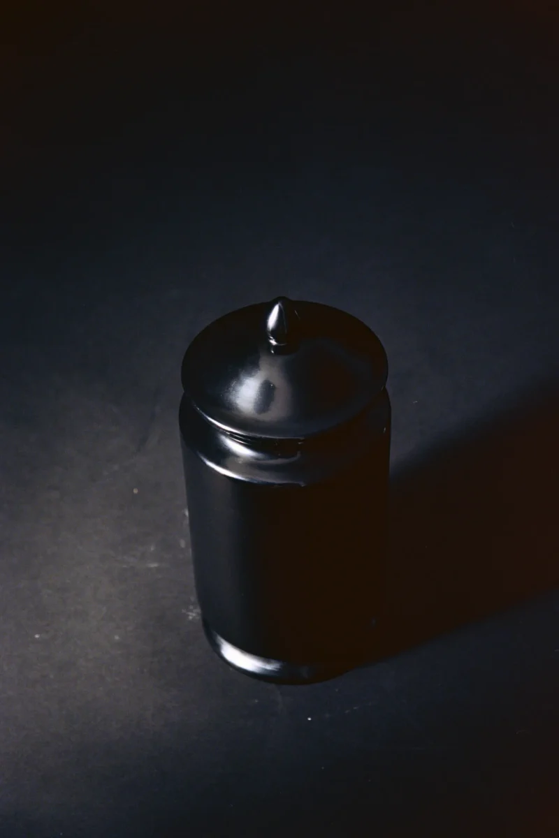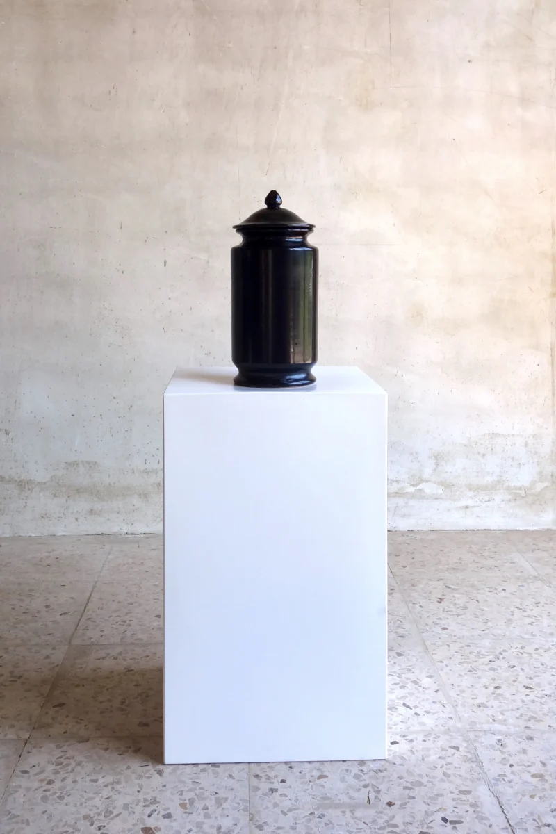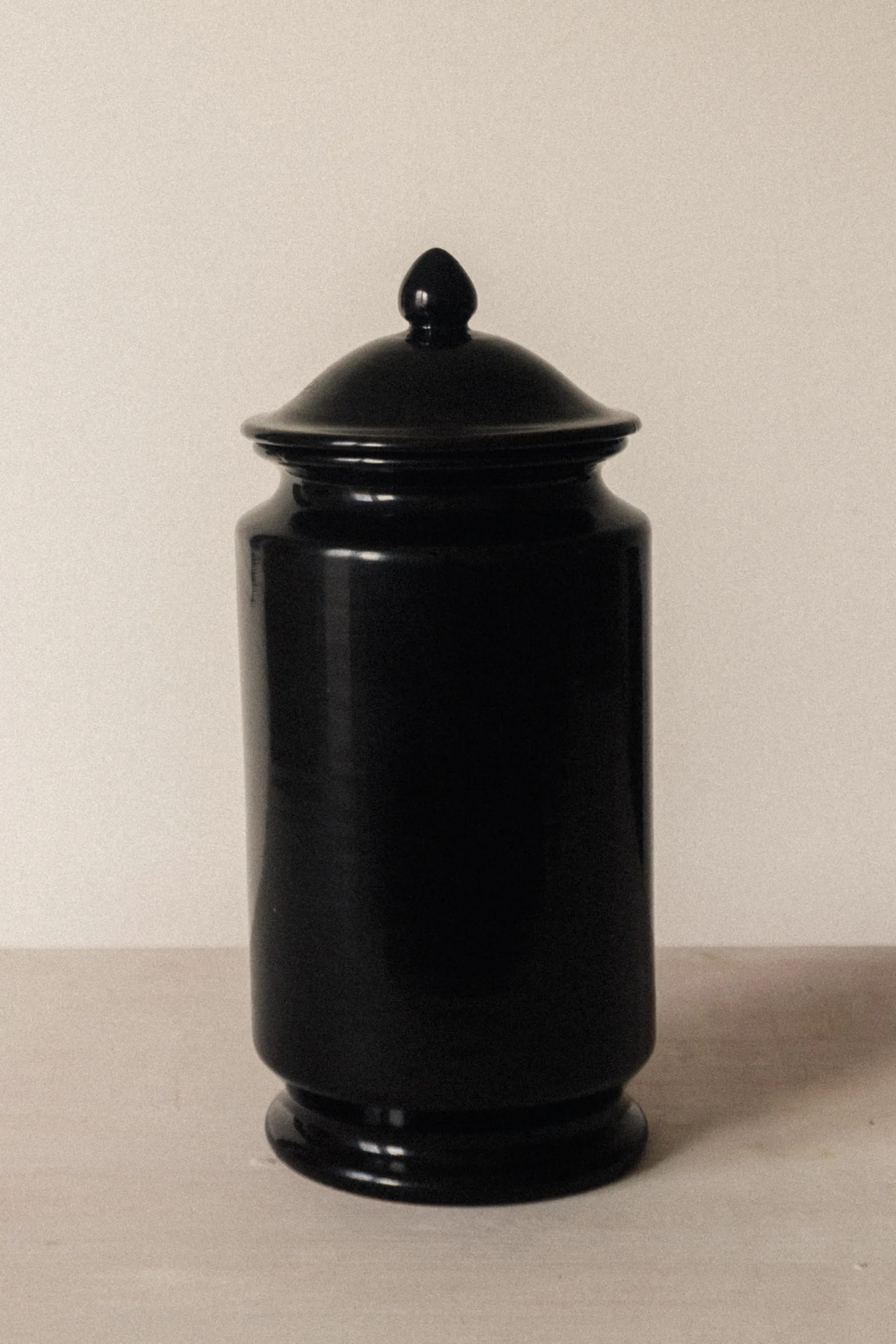 The Albarello is inspired by medicinal jars used to hold apothecaries’ ointments and dry drugs. Its shape made it easier to store on apothecary shelves. The ceramic is hand-thrown and the original decor has been blacked out. The shiny black glaze has been rubbed by hand by the artisans to give this matte finish.