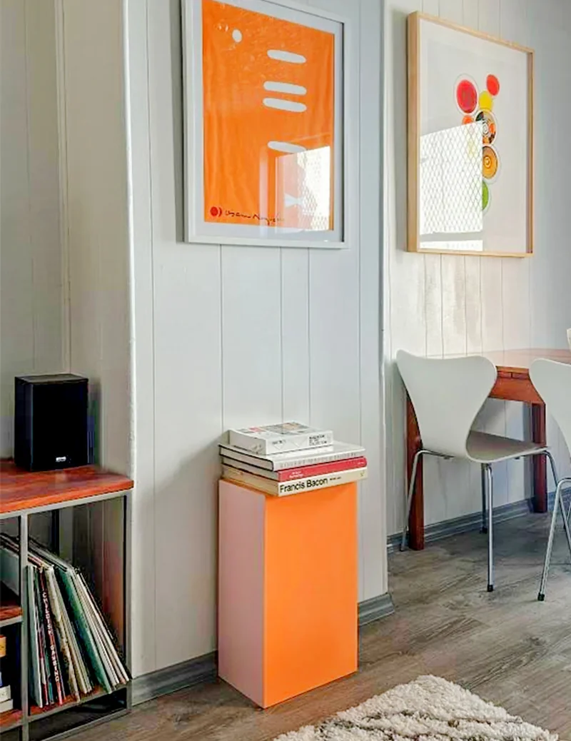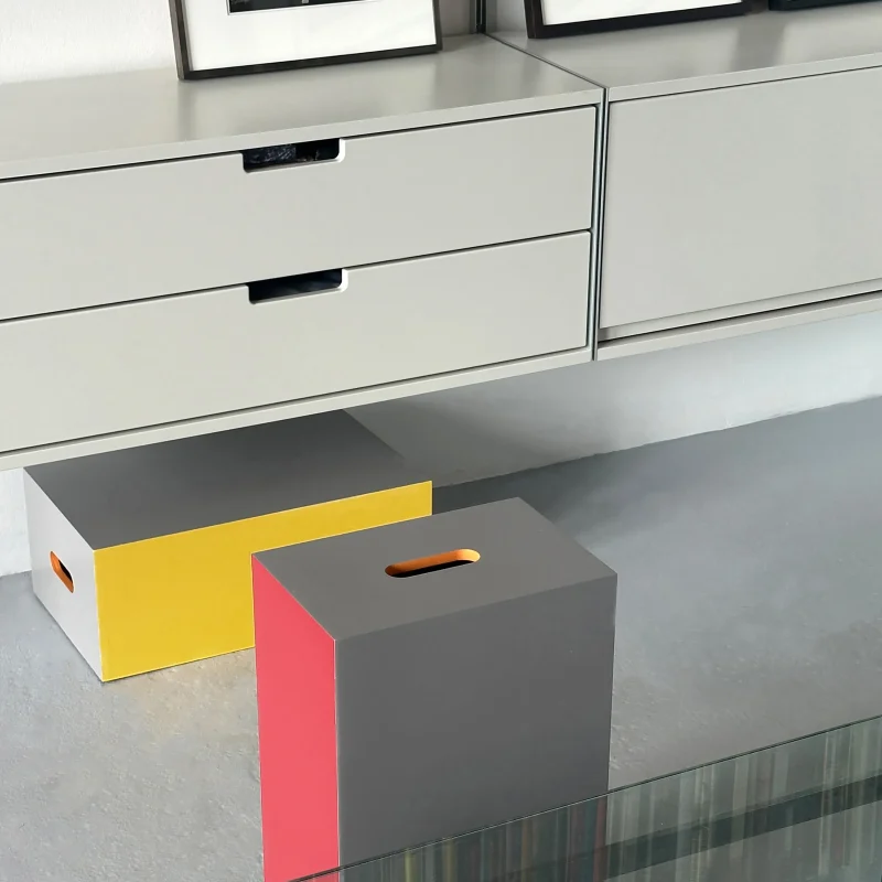 The Apple Box is a familiar sight on film and photography sets, a versatile tool that is pressed into endless service as a seat, step ladder, table, pedestal. We have elevated it to icon status, like Le Corbusier, but rendering it in Baltic birch plywood with rich color on all sides. This simple form evokes the sleek minimalism of Judd and the palette of Barragán. Use it wherever it comes in handy. Handcrafted in the USA.
