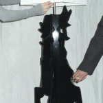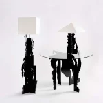 “The Beast” Floor Lamp, is part of the collection of furniture designed by Elena Rocabert and Marta Ochoa. The inspiration behind this collection draws from the enigmatic world of the Rorschach Test, where abstract inkblots encourage viewers to interpret what they see. Each item in this collection evokes different creatures and animals, making it a testament to the power of the human imagination. With its sleek and bold black form, it boasts a horn-like feature that calls to mind the presence of a majestic bull.