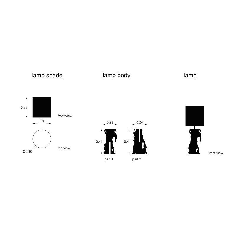 The lamp is made out of two pieces of lacquered wood that are joined together to form the body of the lamp. The lampshade is made of white linen.