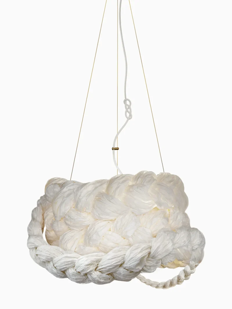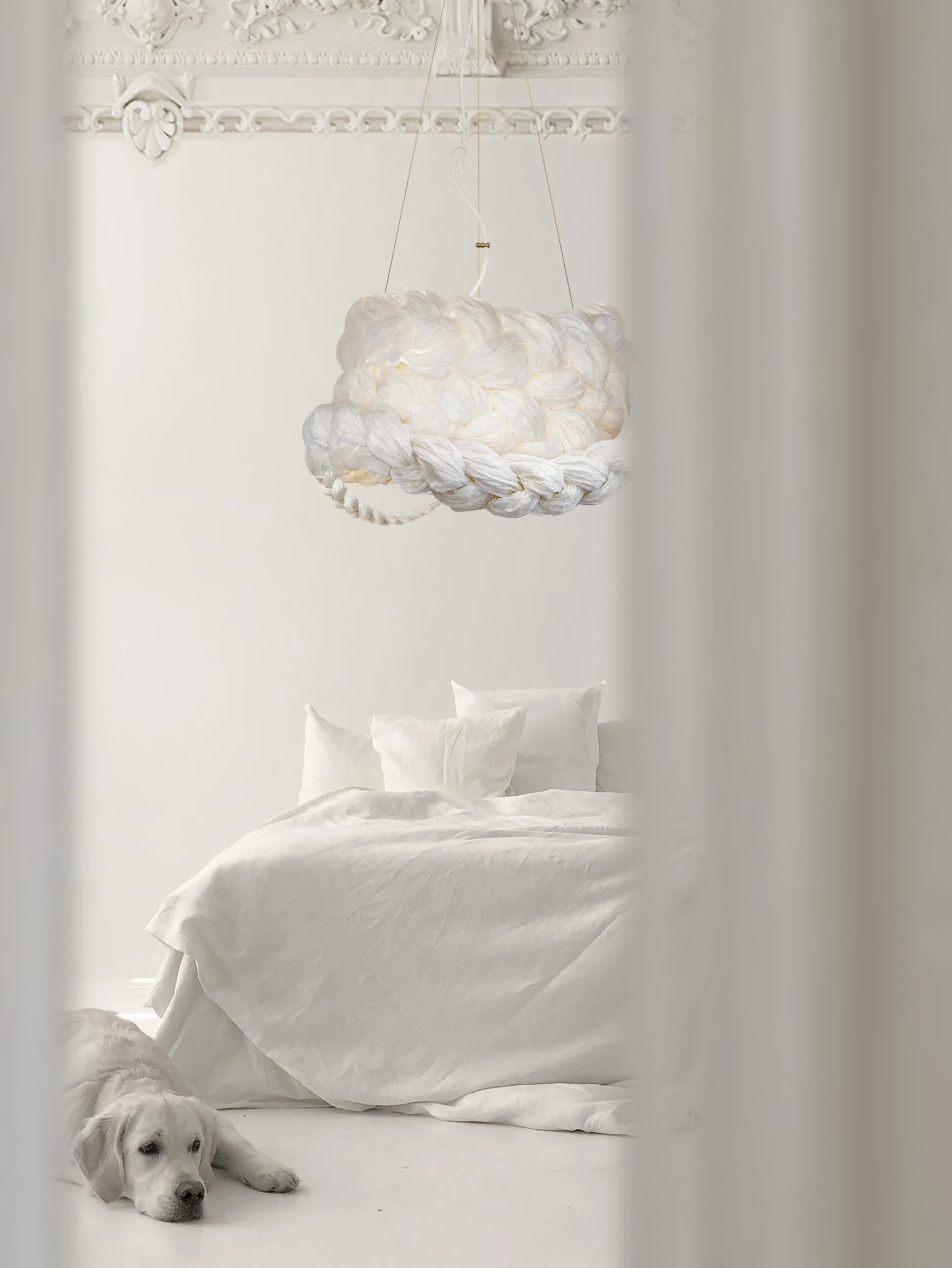 Entirely handmade, each Bride lamp has her own braid pattern and unique personality. Each lampshade interacts with the light and space uniquely, providing highly emotional lighting design. These lamps provide diffused lighting. Lamps are designed and handmade exclusively by Mammalampa.