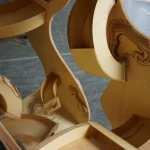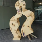The cabinet in love is based on a person who is a total cabinet! Well organized and sharp, the person fell in love. The hard character turned into dreamy and soft. From stiff and edgy, the cabinet became fragile and emotional. Love bent the sharp angles of the drawers and changed the cabinet’s system from inside-out. Made with CNC and hand-carved surface, it combines traditional cabinet-making techniques and new technologies. Each handle is a unique glass or ceramic piece. The facade is set with sand-cast glass pieces. The cabinet was repainted in 2024.