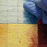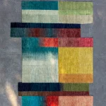About the collection: A foray into visual storytelling depicting vivid abstractions of the Punjabi Landscape – the collection consists of a series of three hand-knotted rugs made of 100% hand-spun wool. The wool is hand-dyed and the rugs are trimmed meticulously by skilled artisans. What began as a single rug – The Calendar – soon expanded into a series of three limited edition pieces.This collection of rugs is an homage to the land showcasing climate change due to the catastrophic interventions perpetuated by humans. The labor intensive process of carpet making mirrors the hardships endured by farmers desperate to ready the land in time for the next sowing season – in their fervor burning expansive swathes of land that pollutes the land and sky for weeks on end, slowly sapping the once bountiful Punjabi soil of its nutrients.