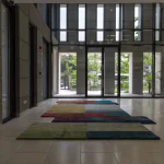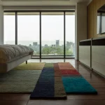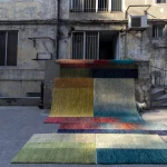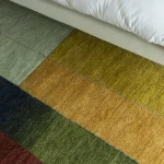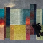 The Calendar from The Smog Collection by A* alittlemore studio encodes the seasonal transitions of the landscape including the farming cycles of wheat, rice and cotton across one calendar year. The landscape is abstractly represented across the rug, morphing as the seasons change. Starting from spring and ending in the dead of winter, the hues in the rug transmute and shift creating a soft visual assemblage of colors and textures across the tapestry of The Calendar. Essentially a calendar that maps the landscape, the rug showcases the journey of the landscape using visual cues that represent each crop as it’s sowed and eventually harvested. Dramatic shifts in color and texture showcase the atmospheric effects of crop burning onto the land and the sky, its effect reverberating into other seasons. The rug is carefully hand-knotted by local weavers, infusing the regional influence into their craft.