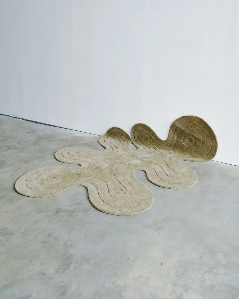 Mush Studios signature design, new and improved. Dune is an area rug that features multiple pile heights, giving the illusion of fluid motion. Inspired by the curvature of sand dunes and organic shapes. Designed in Brooklyn and sustainably hand-made by artisans in India.