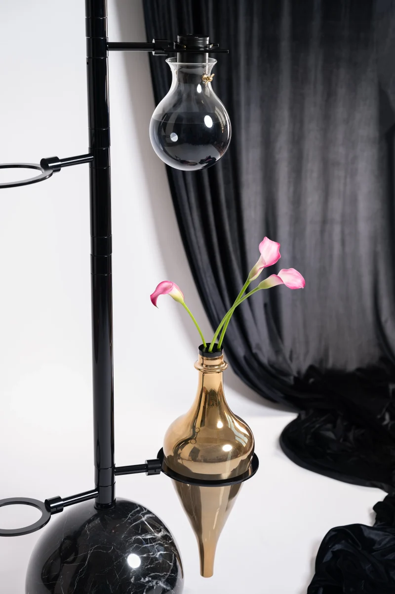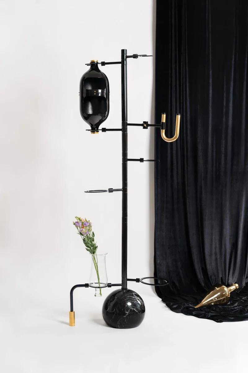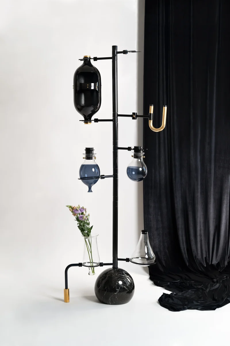 Artist – designer Hania Jneid looked to chemistry sets when designing her elaborate floor lamp, named the Emotional Lab light.