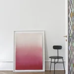 All paintings are unique and may vary a bit from the photo. Each version – “Hazy Blue”, “Hazy Pink”, “Hazy Grey”, and “Hazy Green” – is spray painted with acrylic paint and matte coal on Hahnemühle paper. The measurements can also vary a little, as Anne Nowak gently tears her artworks out of large paper pieces. The painting is very delicate and must be taken very good care of. We recommend having it framed right away, not touching it at all.