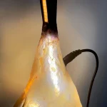 Sabrina’s broader collection, “Sympoietic,” is a masterful blend of human, non-human, and technological elements, creating a deep network of interconnectedness. Drawing from both contemporary and ancient methodologies, she has developed a unique formula for a 100% biodegradable collagen-based bioplastic. This innovative material harks back to historical paint and adhesive techniques, enabling Sabrina to create interactive lighting sculptures that respond to the presence of viewers.
