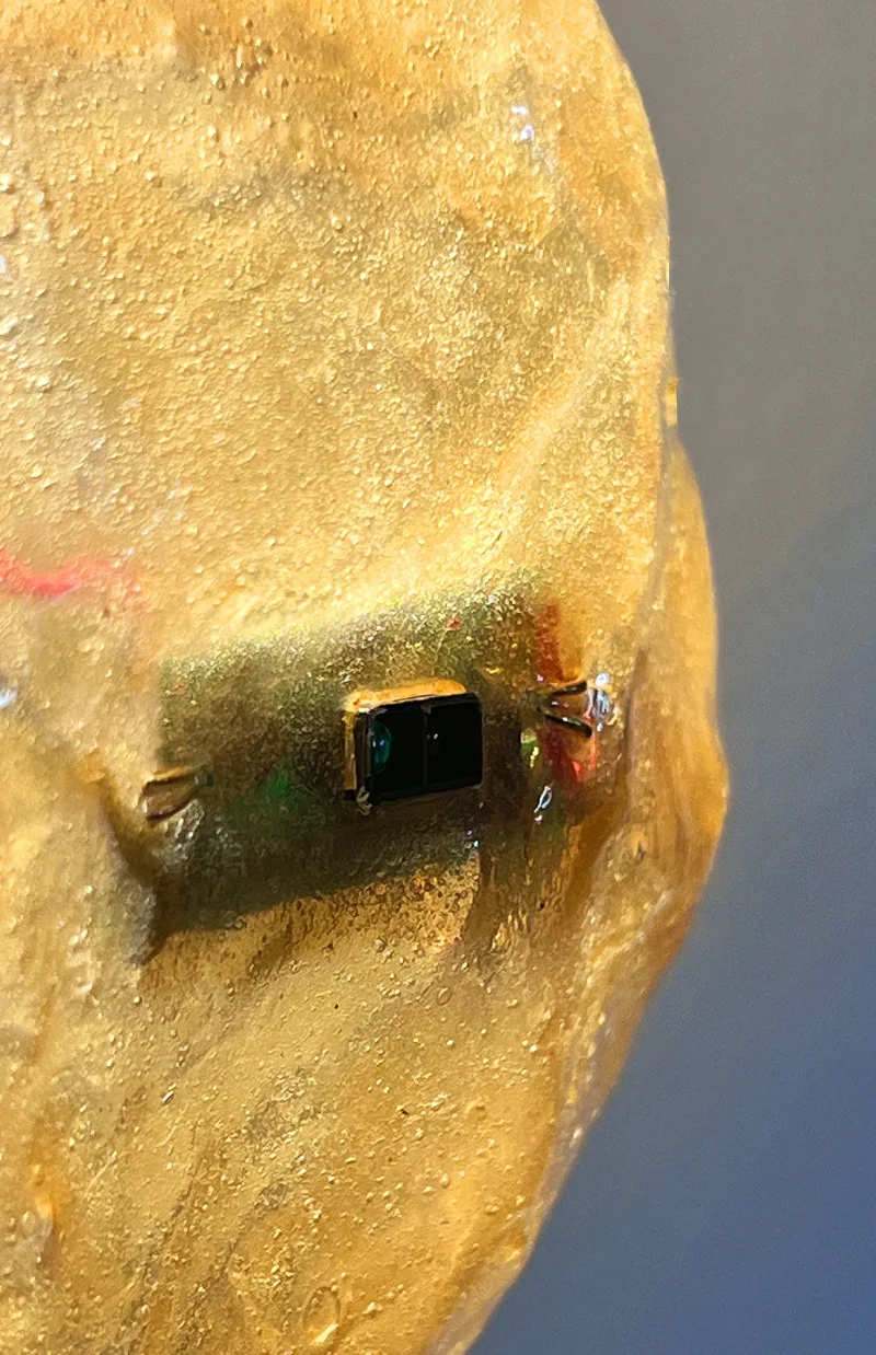 Materials: This series utilizes Sabrina’s bespoke bioplastic, agar-infused glass capsules, motion sensors, crystals, shellac flakes, roots, a vintage enlarger magnifying glass, a wooden tripod, and LED light strips, all coming together to form an eco-conscious and interactive art piece.