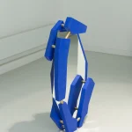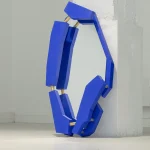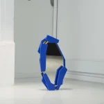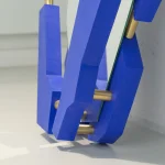 Inspired by the Athena Sanctuary in Delphi, the Last Mirror by Vincent Decat embodies the spirit of its final remnants. This sculptural mirror symbolises resilience and timeless strength. Crafted from hand-cut wood and stainless steel, its design reflects the precise shapes of Delphi’s stones with subtle curved and jagged edges, paying homage to the past while embracing sustainability. The mirror is part of the Ruins of Delphi series, consisting of sculptural furniture pieces reimagining ancient Greece through a contemporary lens. Defined by an unfinished, deconstructed aesthetic, the collection features a chair, bench, and mirror rendered in striking cobalt blue.