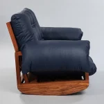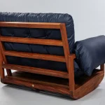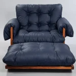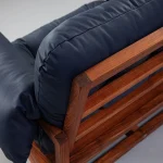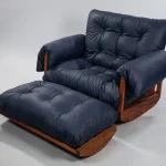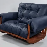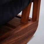 Laziness is a laid-back and spacious rocking armchair, crafted for sitting/lying down and unwinding. The low seat height from the ground draws inspiration from Japanese rocking chairs, while the wooden structure is strongly influenced by Brazilian modernist furniture. Its upholstery is soft and cozy, and can be covered in fabric or leather. This version is produced in solid freijó wood and velvet upholstery