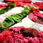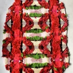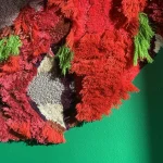 Bright eucalyptus and bamboo wools have been applied in layers and with different textures to evoke varied almost coral landscapes that kiss you.