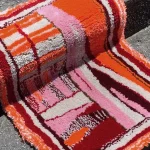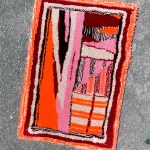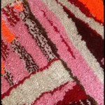 This vibrant hand-tufted rug features a bold palette of pink, red, burgundy, beige, and a striking pop of neon orange , creating an energetic and modern composition that instantly draws the eye.