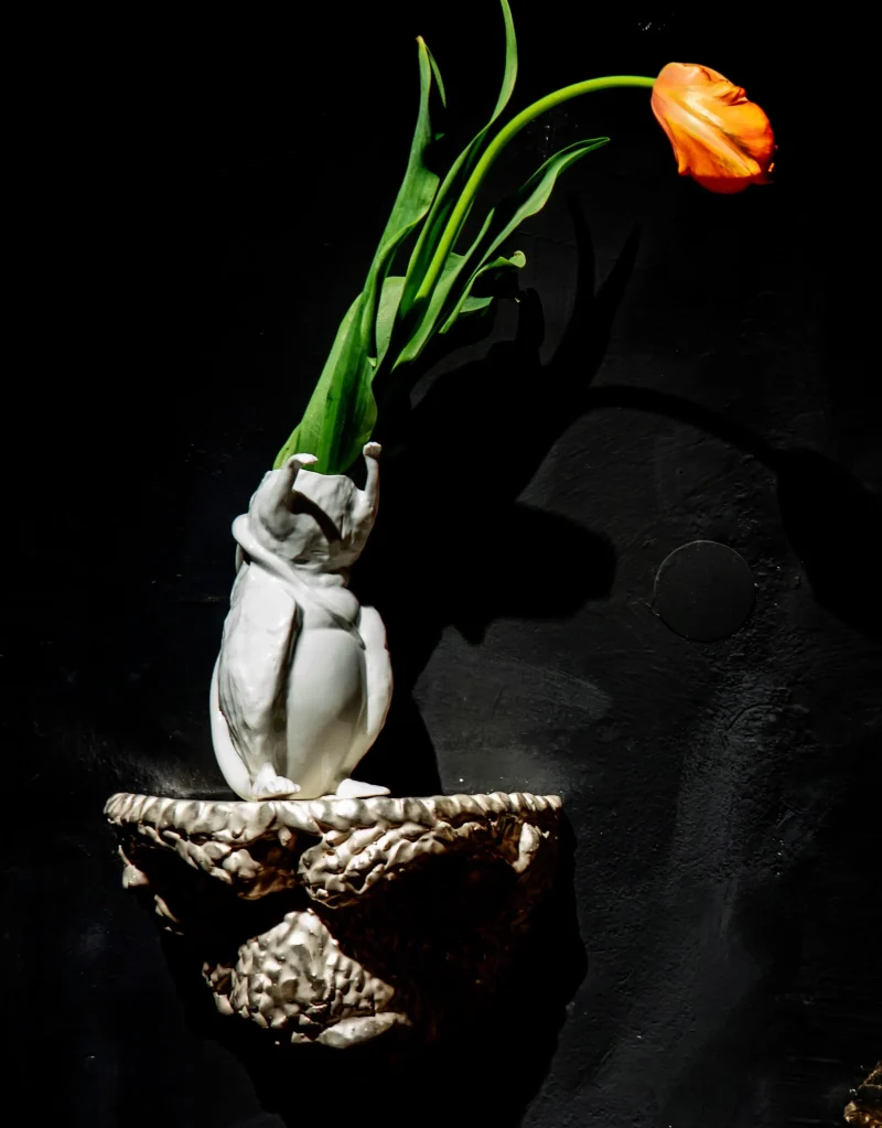 Her pieces subvert conventional notions of functionality: these items are neither intended purely for domestic use, nor for distanced observation. Volokhova´s Porcelain calls to the viewer in the manner of an item that is both exquisite and quotidian.