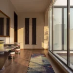 Capturing snippets of the sky, The Runner from The Smog Rug Collection by A* alittlemore studio, is a captivating rug showcasing the sometimes soft, sometimes harsh tones of the sky in response to crop-burning. Intricately showcasing the ever-changing hues in this ill fated season, the rug reflects the atmospheric effects on the land and sky. Hand-knotted threads narrate a tale of growth and decay, from verdant greens and harvest golds to the ethereal blues of the clear sky, the rug depicts the course of nature’s rhythms and human intervention. Encoding the landscape’s seasonal shifts and farming cycles, the soft and harsh tones serve as visual chronicles of nature’s ever-shifting canvas. The Runner prompts reflection on the delicate harmony between human actions and nature, underscoring our part to play in restoring balance.