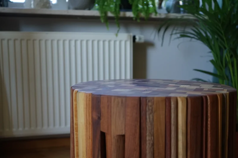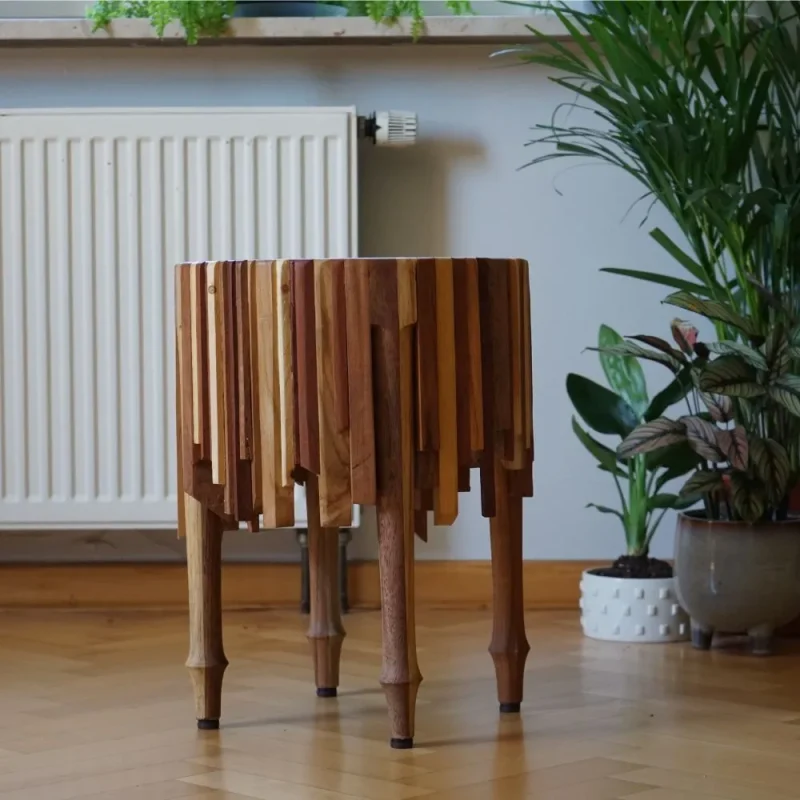 Consist of 100% wooden leftovers, all reclaimed materials.