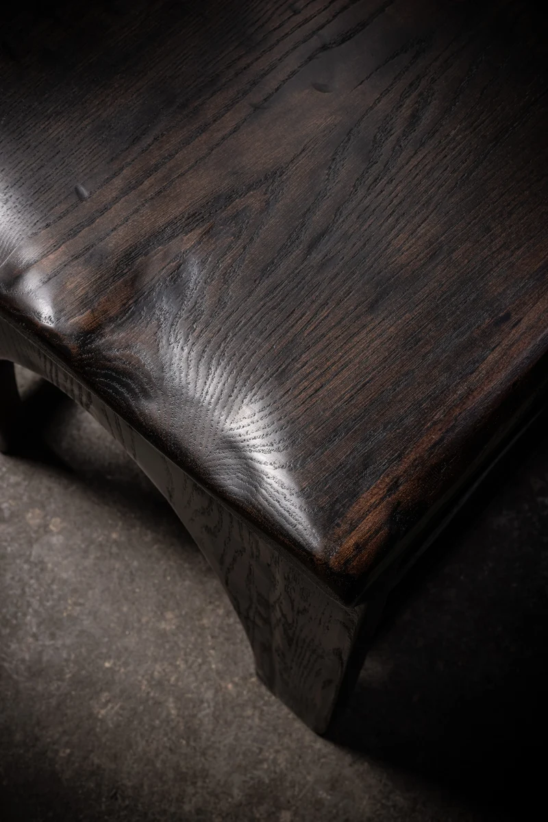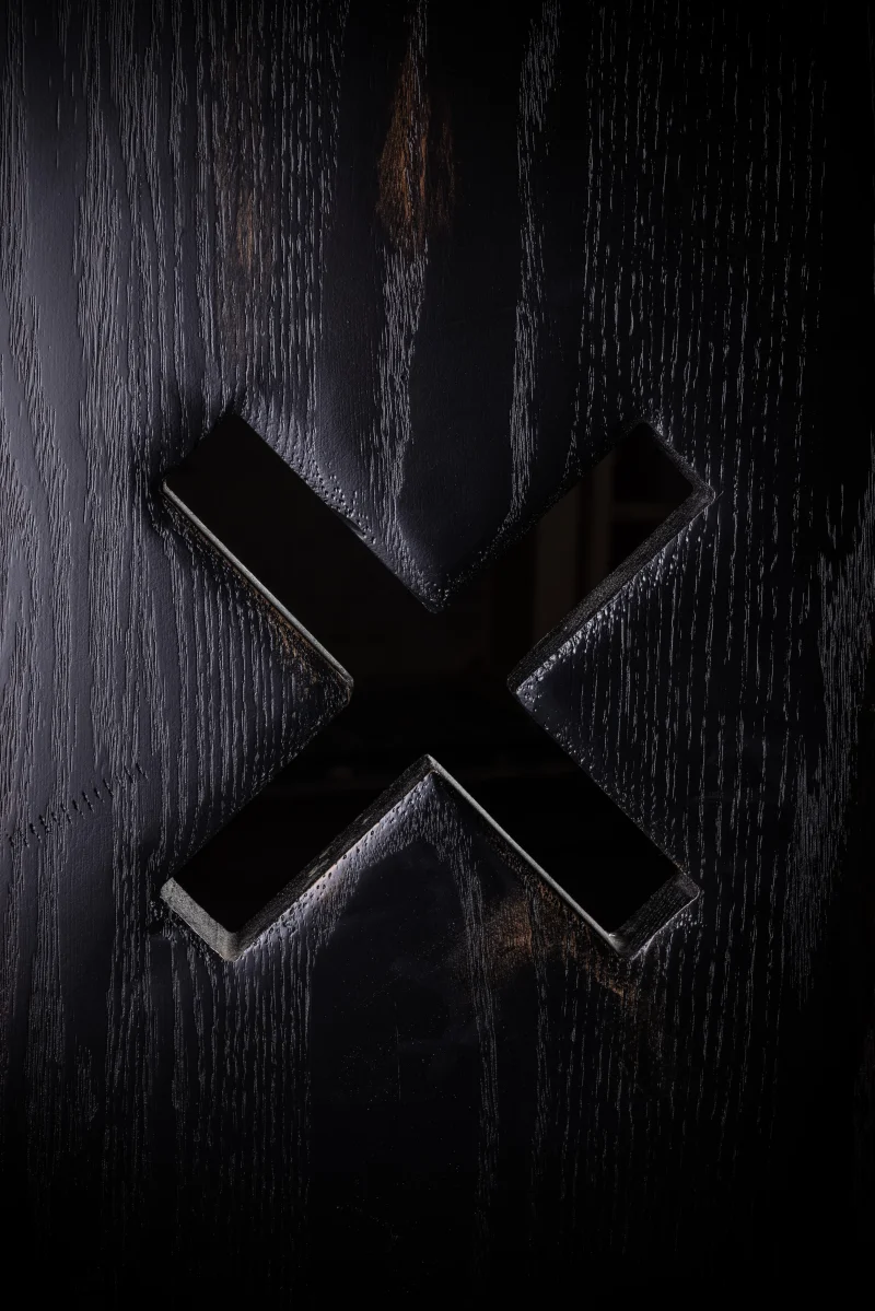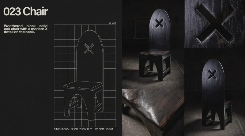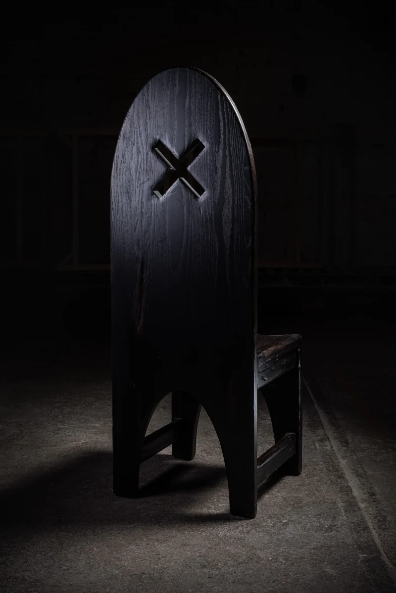 Weathered Black Solid Oak Chair with X Detail, by NO AGE STUDIO.
