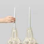 Crafted with precision, the candleholder features an amorphic shape, inspired by the architectural background of our design studio. This distinctive shape not only adds elegance to any setting but also optimizes material usage, ensuring a sustainable and eco-friendly product.