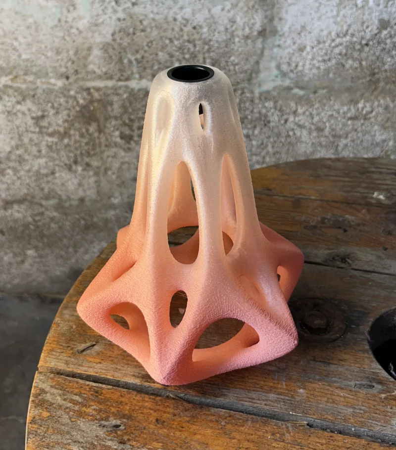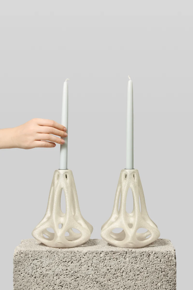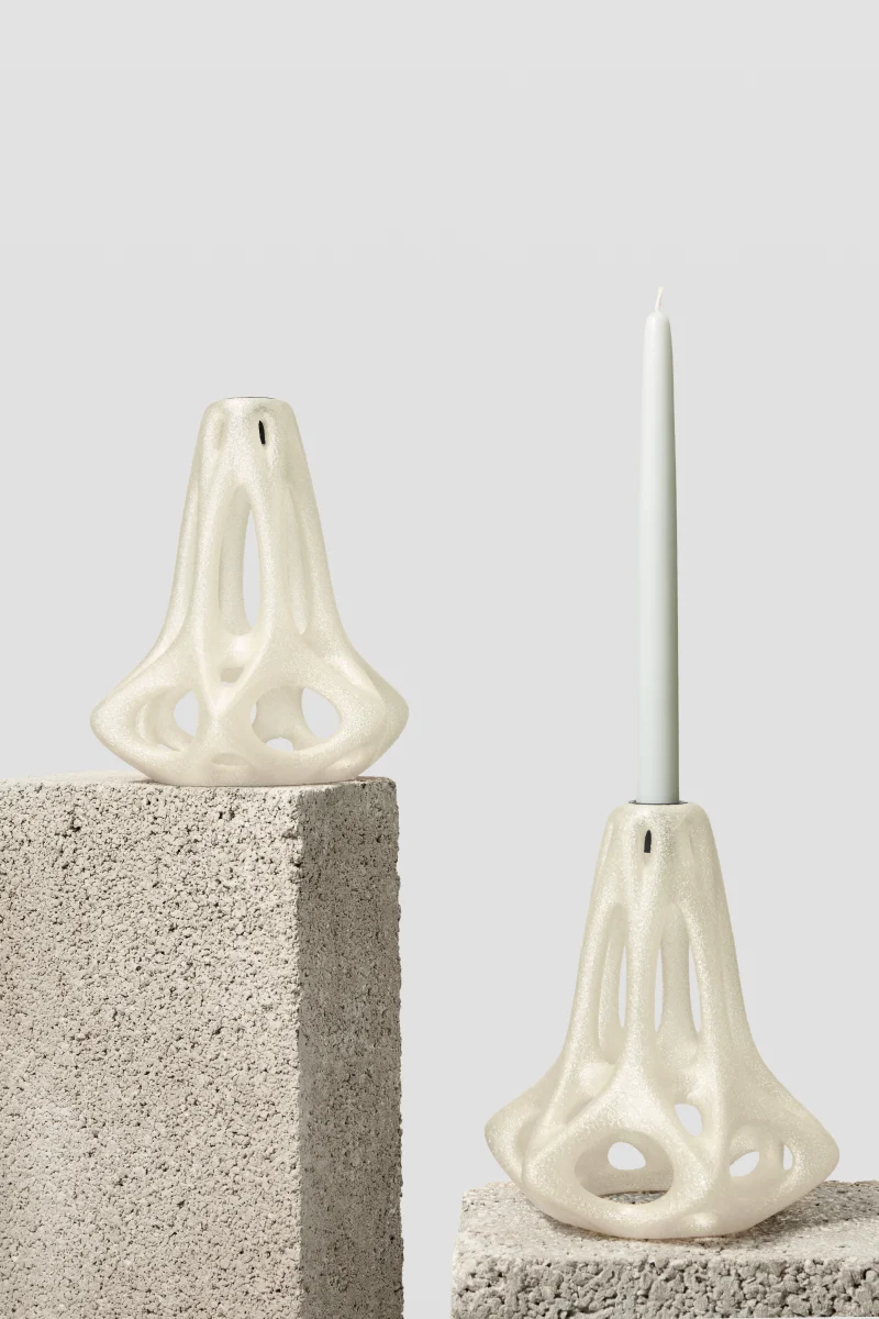 Crafted with precision, the candleholder features an amorphic shape, inspired by the architectural background of our design studio. This distinctive shape not only adds elegance to any setting but also optimizes material usage, ensuring a sustainable and eco-friendly product.