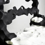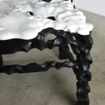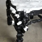 The side table belongs to the Melting Collection, a series that seeks to spotlight the urgent narrative of our planet’s accelerated climate change. The prevailing impact of human activities has made phenomena such as melting ice caps and tundras a part of our daily existence. The fusion of wood and marble in this design serves as a poignant reminder and a call to collective action in defense of our environment.