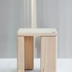 The Timber Burned Pine Stool by Studio Onno Adriaanse reimagines standardized construction beams into a bold, sculptural seating design, transforming industrial materials into artful furniture. By combining modular wooden blocks, the stool achieves an unexpected design aesthetic that balances raw materiality with refined craftsmanship.