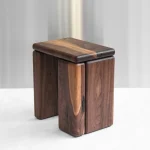 The Timber Burned Pine Stool by Studio Onno Adriaanse reimagines standardized construction beams into a bold, sculptural seating design, transforming industrial materials into artful furniture. By combining modular wooden blocks, the stool achieves an unexpected design aesthetic that balances raw materiality with refined craftsmanship.