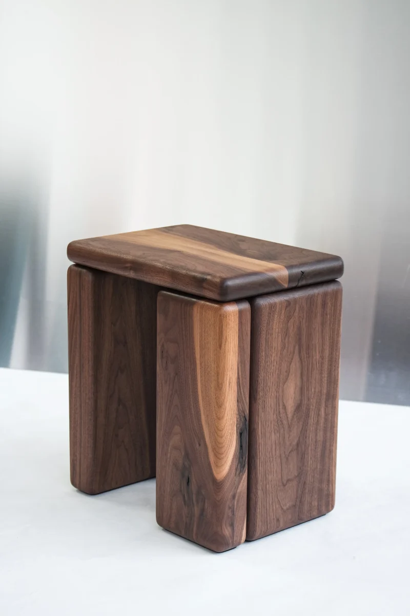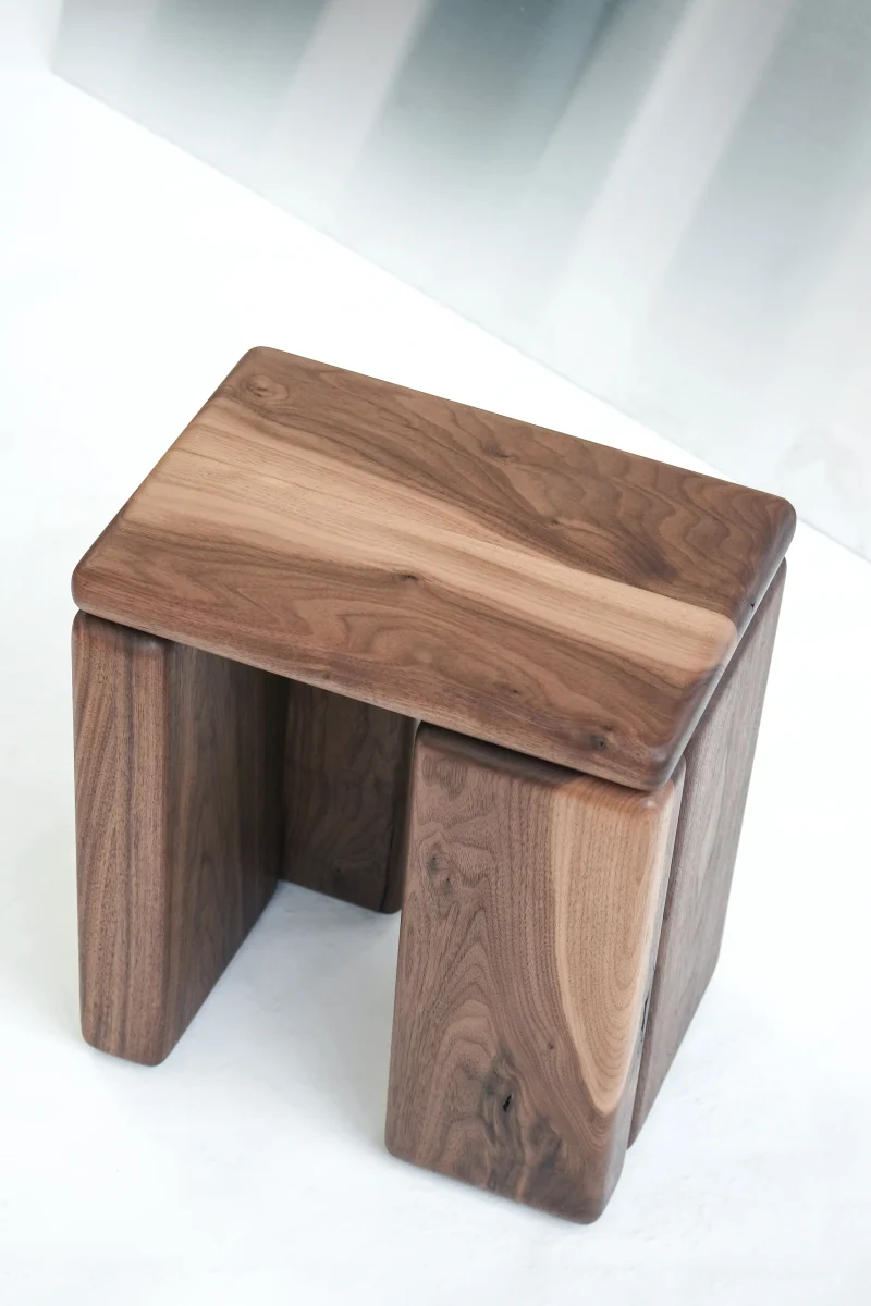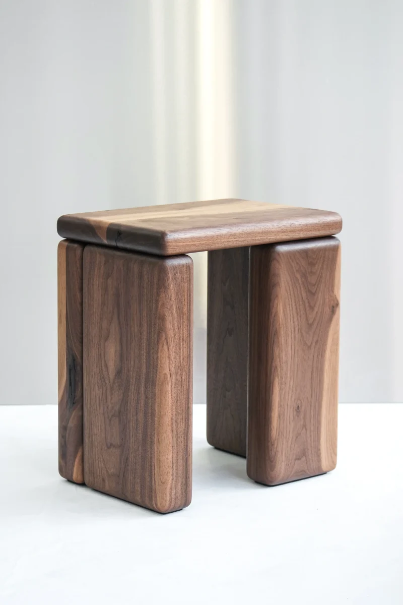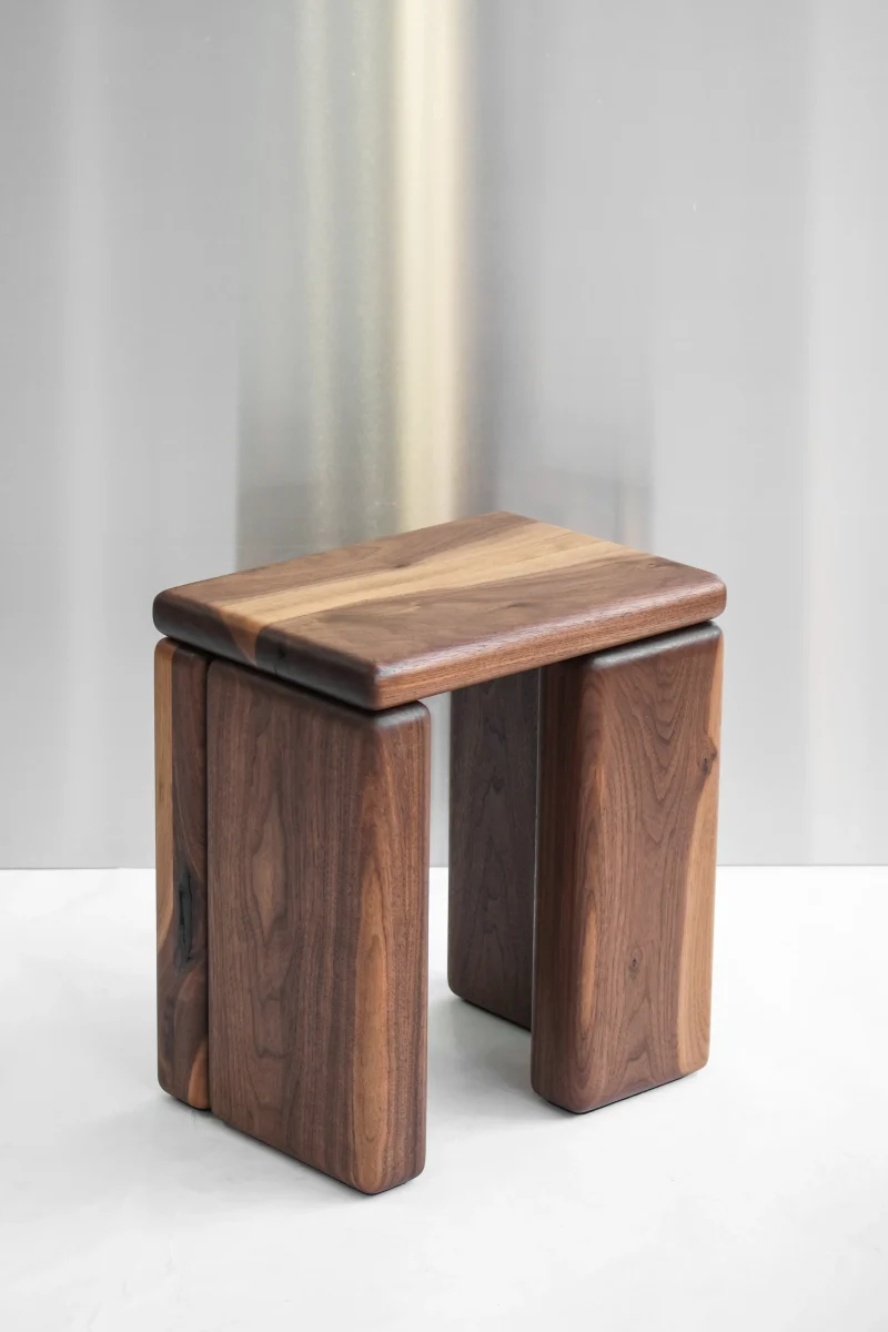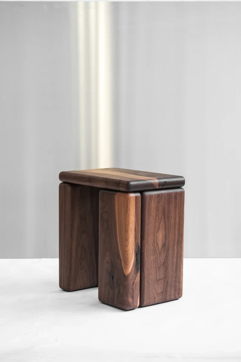 The Timber Burned Pine Stool by Studio Onno Adriaanse reimagines standardized construction beams into a bold, sculptural seating design, transforming industrial materials into artful furniture. By combining modular wooden blocks, the stool achieves an unexpected design aesthetic that balances raw materiality with refined craftsmanship.