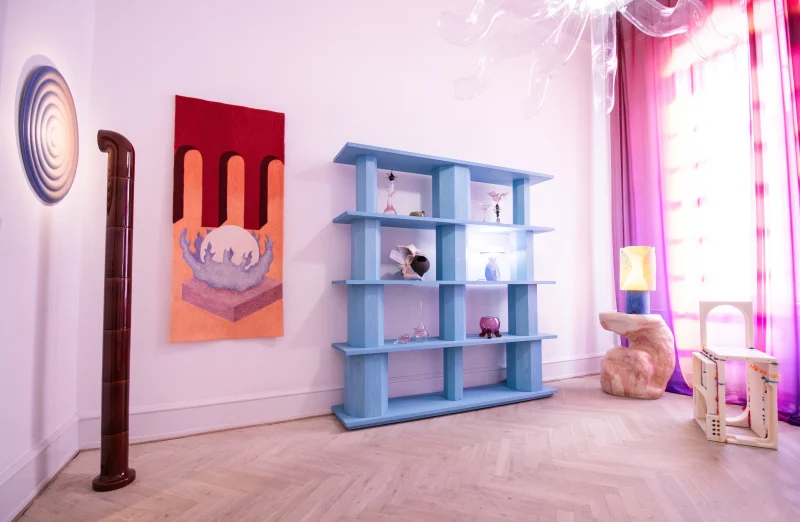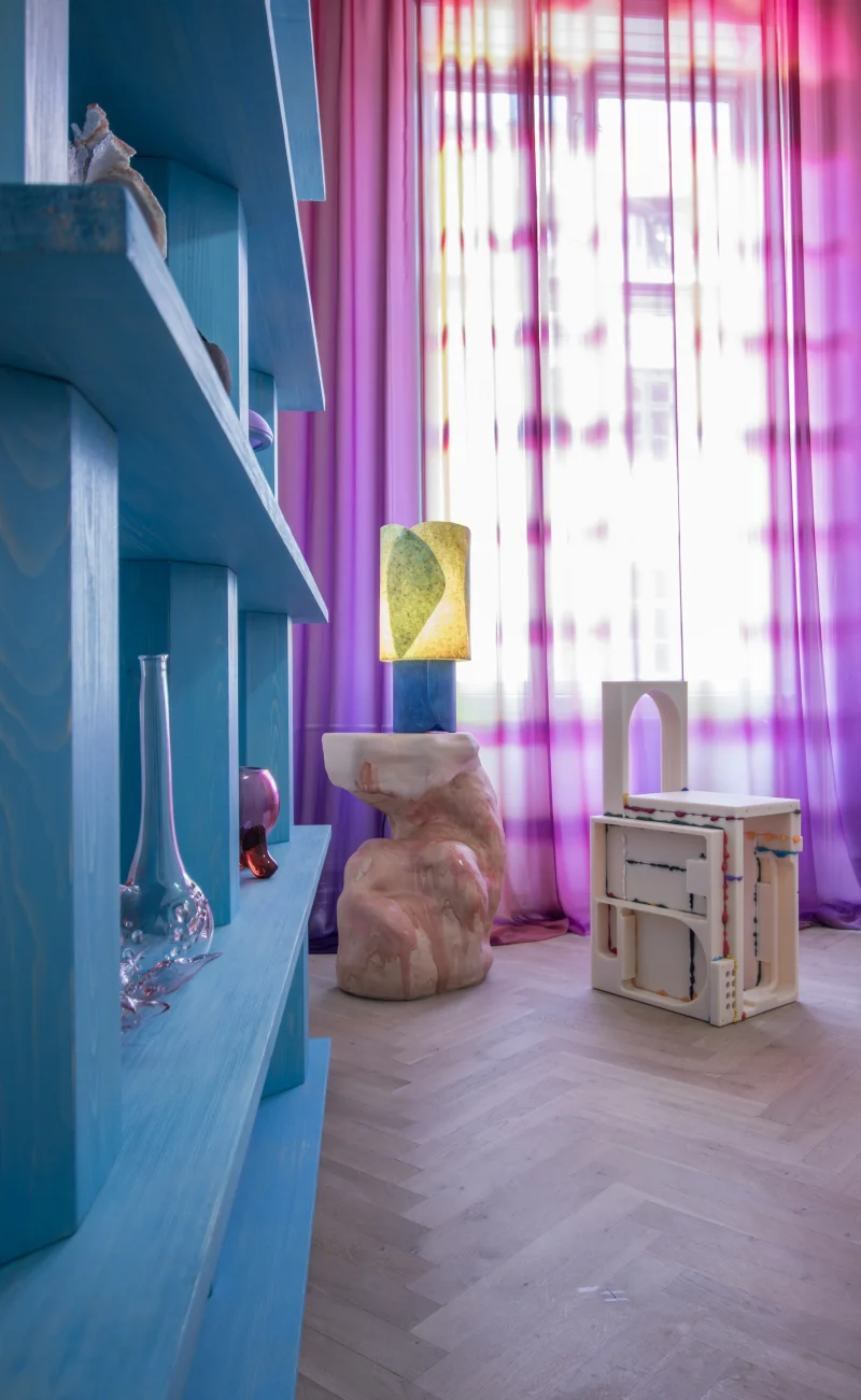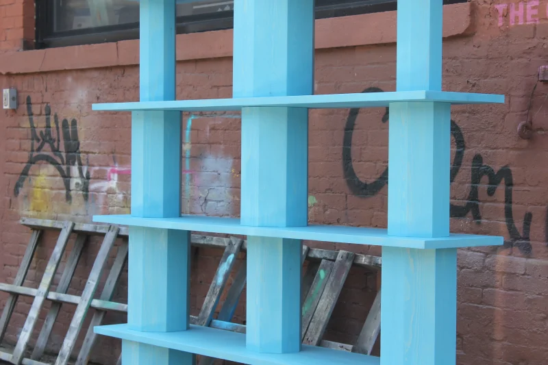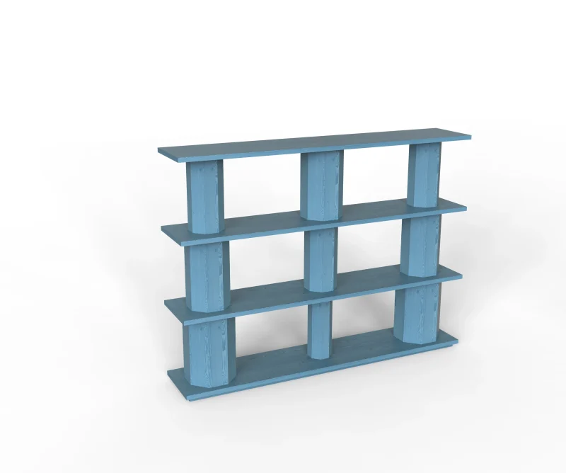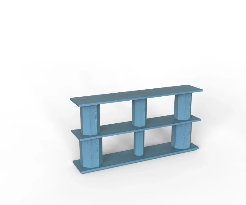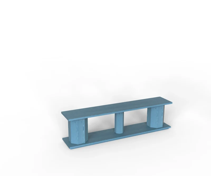 Made of solid pine wood that has been stained light blue, the piece maintain a level of familiarity and tactility while the blue color adds a playful and airy feel.