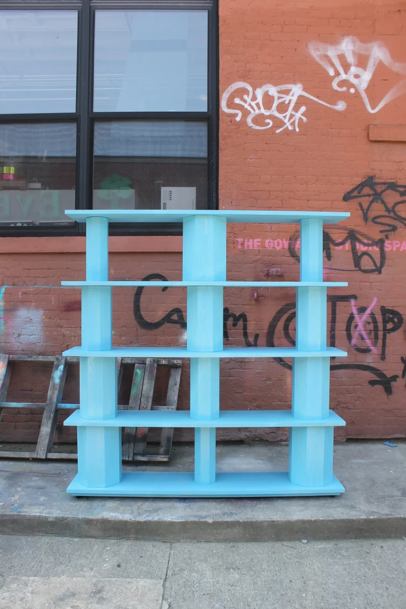 Inspiration for the Tip Top shelf was subconsciously developed over years of living in New York. Biking through the city, discovering new buildings and views created a sense of an ever changing landscape no matter where you go. I wanted to capture this architectural inspiration and bring in down to a relatable scale and invoke a tangible aspect to the piece. The expression of the shelf changes as your move around the shelf – much like the skyline of New York.
