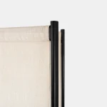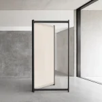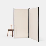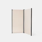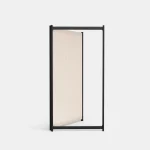 Tirai is a free standing room divider system with an airy, clean and minimalistic look. The entire system consists of three components: the metal framework; the fabric and the flats. This extremely light and especially mobile room divider can be reconstructed and repositioned over and over. The metal framework comes in black powder- coated finish with a light cream colour sheer-linen fabric around.