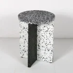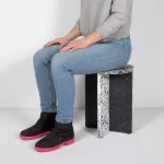 The products are durable and resistant to moisture and dirt. Each piece of furniture is unique, as every panel is unique. The furniture is simple, the emphasis is on the material and patterns and functionality so that each product serves its purpose. All products can also be ‘re-melted’ into new plastic sheets, as they are made of only one type of material (HDPE – high-density polyethylene), or disassembled and assembled into a new product.