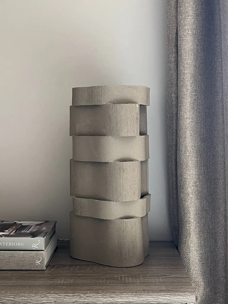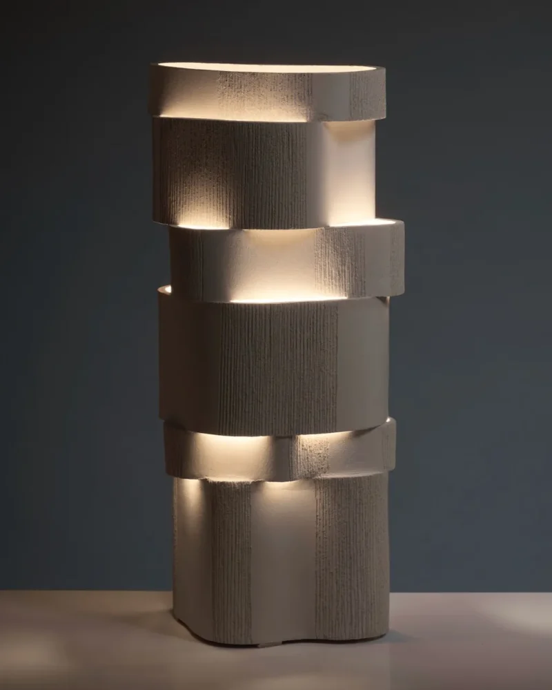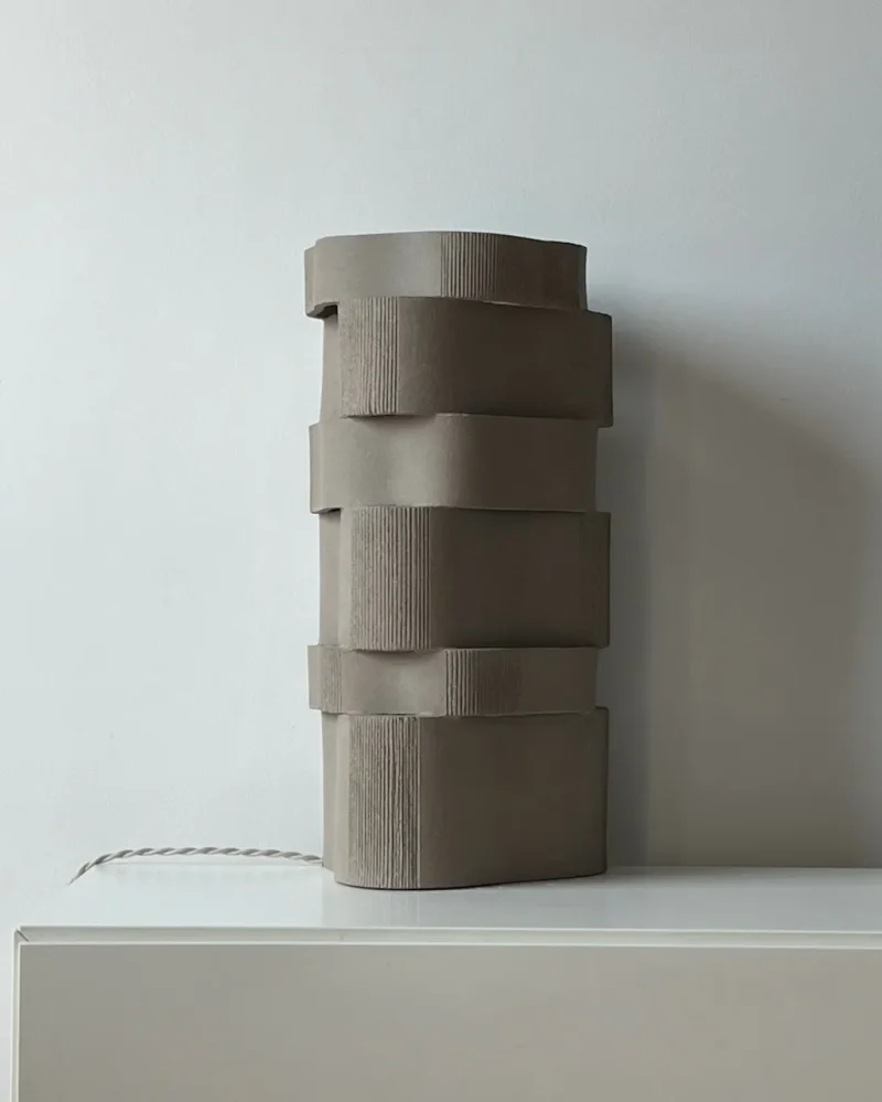 Guided by a passion for raw, tactile textures, designer Katia Langeard has created this limited-edition sculptural lamp, inspired by the Brutalist movement and characterized by its layered, curved forms. Balancing architectural presence with organic fluidity, the piece transforms solid material into a play of depth, light, and shadow.