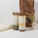 It is made of two cylindric landscapes dyed on washi paper and rolled around a walnut hold evoking the Torii, a symbolic portal towards the spiritual realm.
