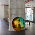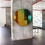 Guillermo Pernia’s glass pieces exemplify his vision of merging functional design with artistic expression, meticulously crafted to evoke curiosity and provoke thought. Made from high-quality floated glass, this mirror transforms a simple reflective surface into a captivating focal point through a dynamic interplay of light and color. Combining traditional glassmaking methods with innovative techniques, Pernia’s production process highlights the structural and sculptural capabilities of glass, ensuring each piece meets the highest standards of quality and beauty.