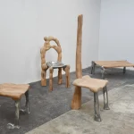 This chair by Sai.E Studio is crafted from carved beech wood and aluminum mold casting. TPF (The Parasitic Factors) series, inspired by the artist’s personal experiences, explores natural relationships and reflects insights gained through these observations.
