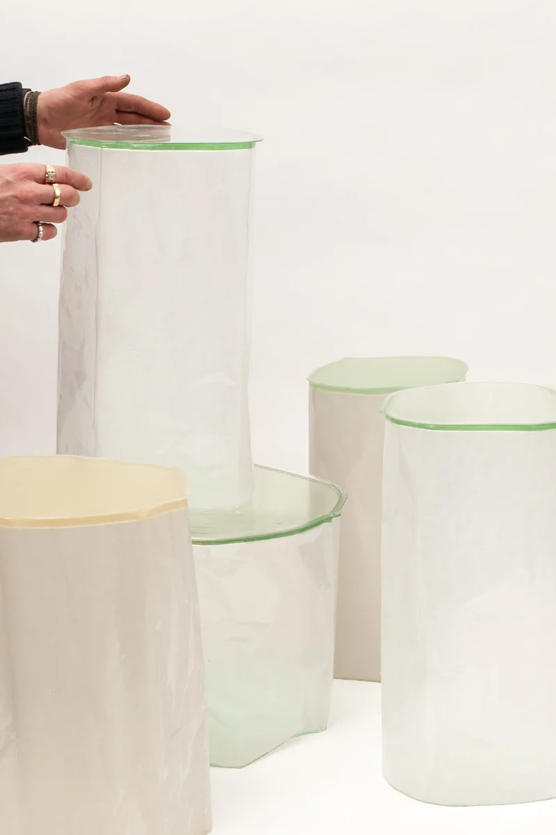 An evolution from the material exploration of the Wowtable, the Trace Table by Calen Knauf emerges as a contrasting counterpart. Unlike the assertive and upright stance of the Wowtable, Trace Table adopts a more delicate perspective. Similar to the Wowtable, each Trace Table is constructed by soaking vellum paper in epoxy resin, resulting in a unique form shaped by the unpredictable nature of the vellum’s absorption. The ethereal presence of the Trace Table is understated and discreet, yet its robust qualities should not be underestimated. Despite not being recommended by CKS, Trace Table is capable of supporting the weight of a person. Trace Tables are produced in limited quantities as they become available, and can be finished in a range of coloured shades and sizes.
