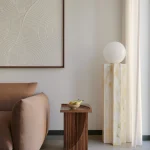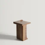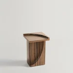 Crafted from repurposed solid walnut and oak wood, the Trama Side Table showcases precise patchwork craftsmanship, elevating the uniqueness of natural timber. This piece blends traditional woodworking techniques with modern manufacturing processes, resulting in a thoughtfully designed, one-of-a-kind piece that celebrates Portugal’s rich heritage of craftsmanship. Whether standing as a bold centerpiece or enhancing a living area, its design balances clean, rational lines with a harmonious interplay of hard and soft elements, creating both visual interest and functionality.