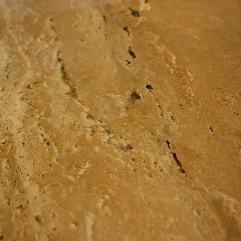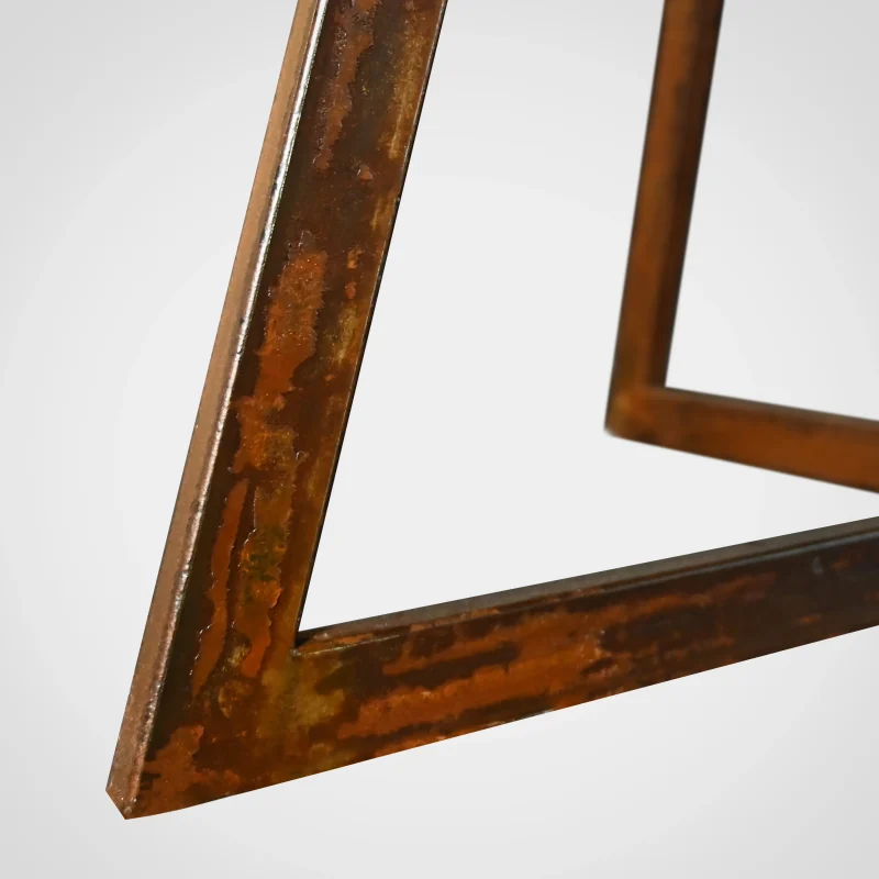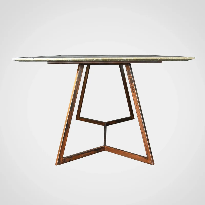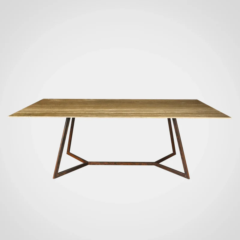 Refined beauty in its element, the Trapeze Dining Table by Nicola Di froscia is made of resined travertine. The steel legs are finished with a Corten effect and are structurally designed to highlight and outline the beauty of the travertine top.