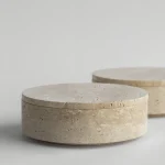 Crafted from carefully selected from Turkish travertine by Kiwano Concept, each piece is uniquely veined by nature. Both functional and sculptural, it adds a sophisticated touch to dining tables, coffee tables or consoles.
